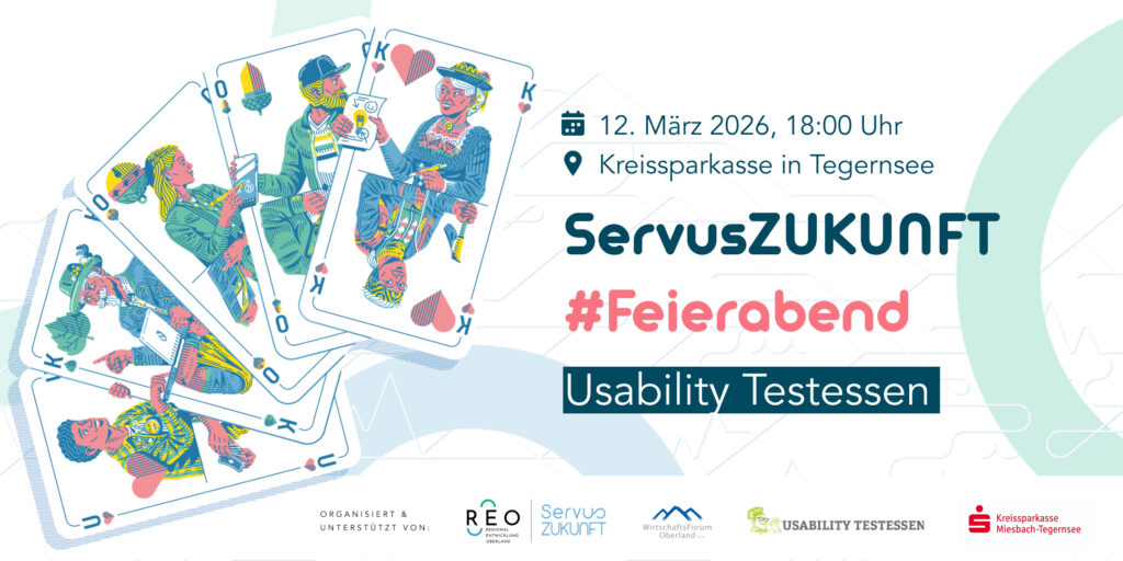 ServusZUKUNFT ist eine Initiative der Regionalentwicklung Oberland KU und dem Wirtschaftsforum Oberland e.V.. Gemeinsam setzen die beiden für Wirtschaftsförderung und Regionalentwicklung zuständigen Organisationen in den Landkreisen Miesbach und Bad Tölz-Wolfratshausen Projekte im Bereich ,,Innovation und Gründen“ um. Dazu gehören regelmäßige Netzwerkveranstaltungen, wie der ServusZUKUNFT #Feierabend, aber auch langfristige Bestrebungen, wie die Schaffung eines Innovationsökosystem in der Region. Die Initiative wird außerdem im Rahmen der Landesentwicklung Bayern durch das Regionalmanagement des Bayerischen Staatsministerium für Wirtschaft, Landesentwicklung und Energie gefördert.